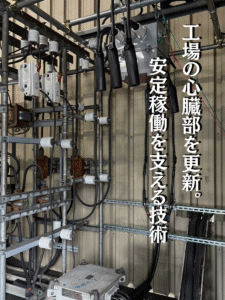 発電した電気を工場内で使うためには、キュービクル(受変電設備)への接続が不可欠です。
